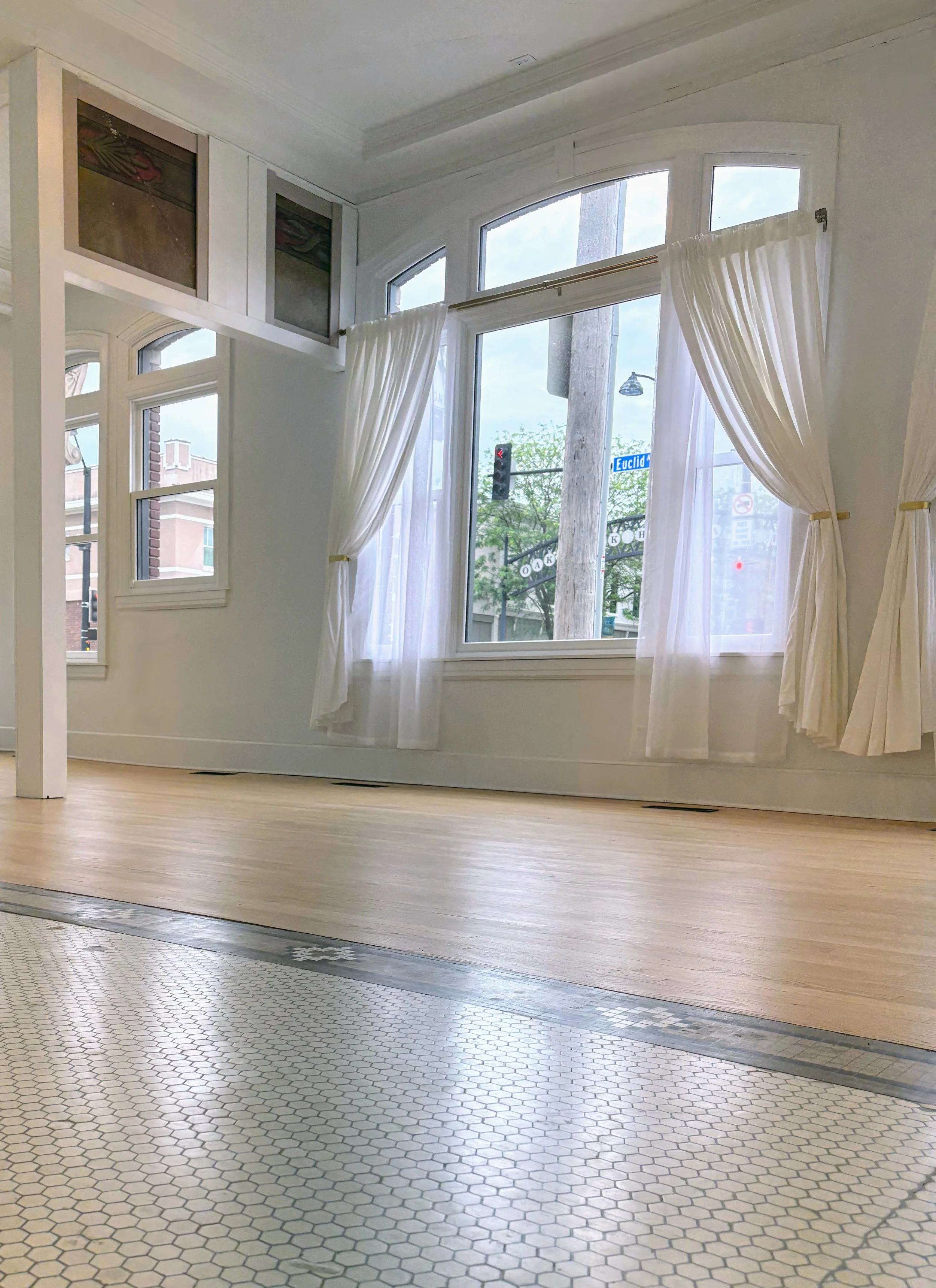 The Bank is a reference to the Euclid Avenue State Bank which was the original resident when the space was built in 1919. Our space has been renovated but kept some original pieces of the building such as: the original tile flooring, a portion of the original wall design, and the original cement location of the vault (where our soft seating is located).